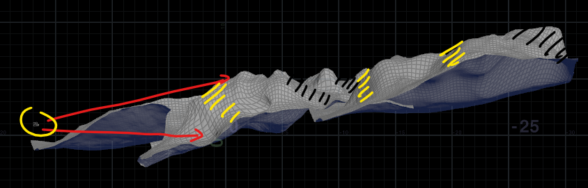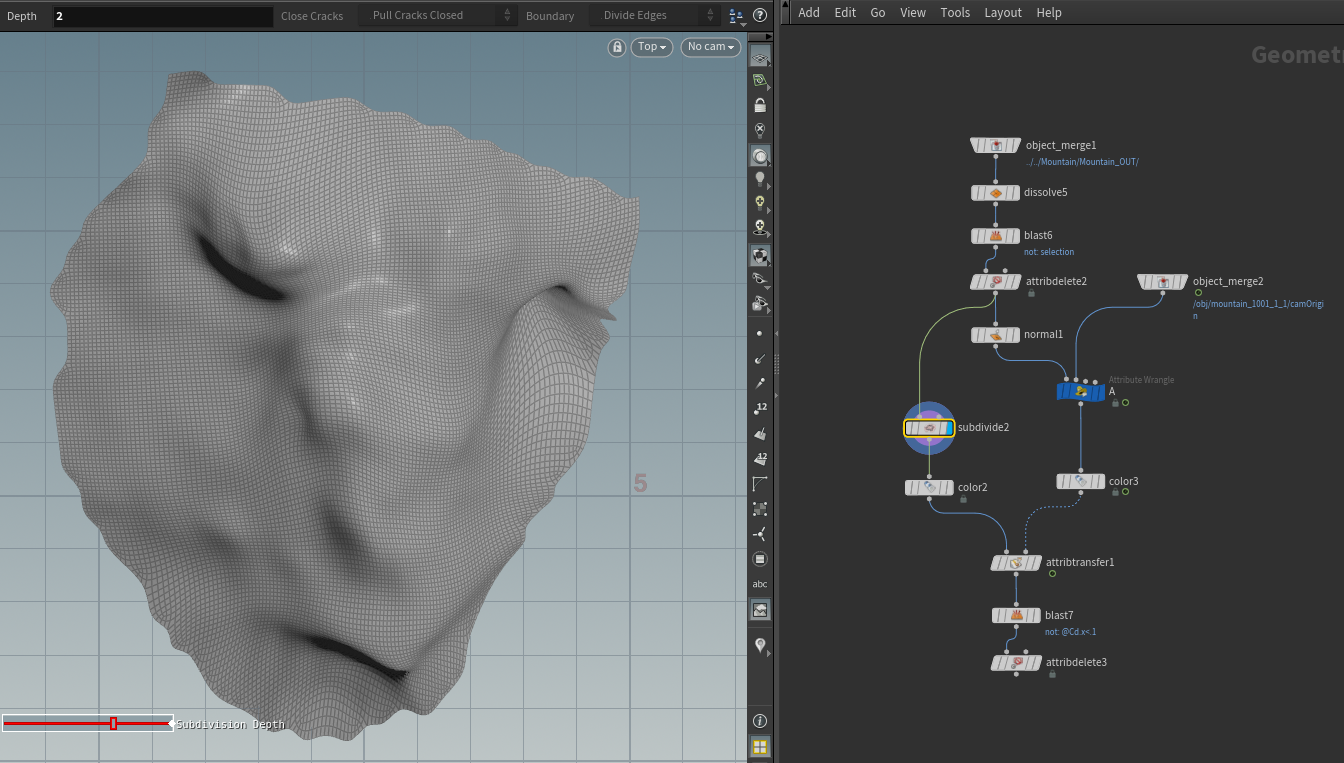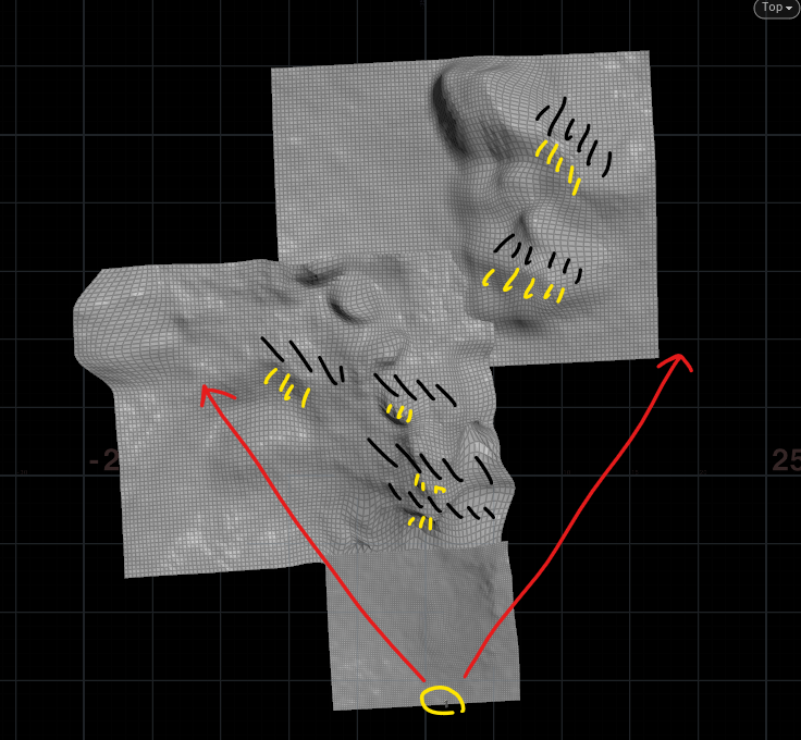 Dot product 로 면을 지우기 전에, 산 모델링 섹션을 나누어서 진행했다.