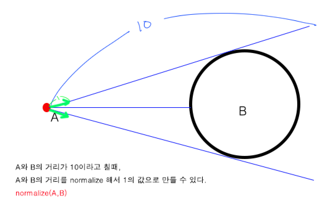 5. A와 B 사이의 거리를 normalize 해줘야 한다. ( = C라고 하겠음. )