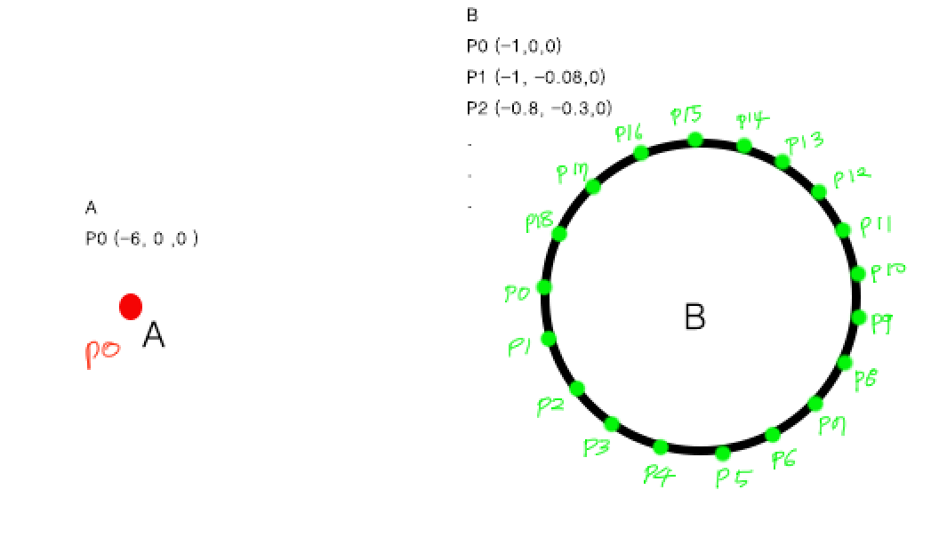 2. A와 B의 각 point들의 포지션 값(@P)을 알아야 한다.