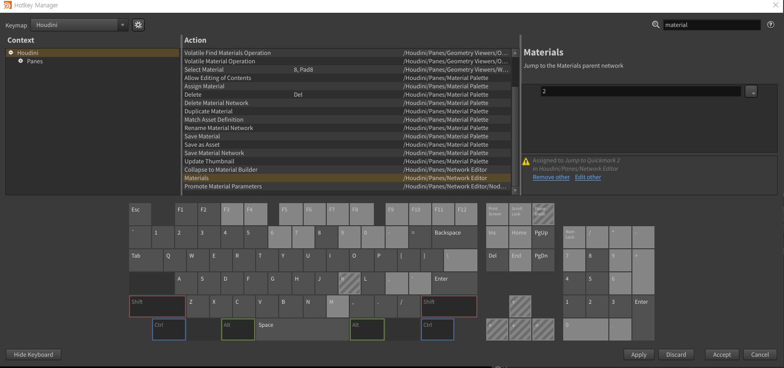 network view 에 있는 obj , mat , out 을 1,2,3 단축키로 설정해서 간편하게 왔다갔다 할 수 있다.