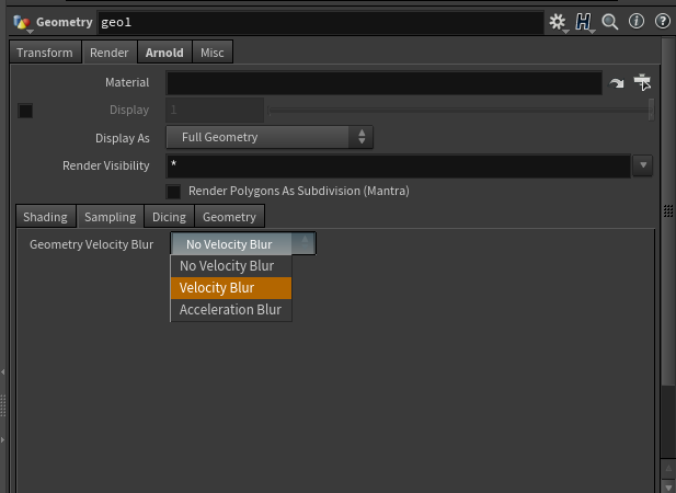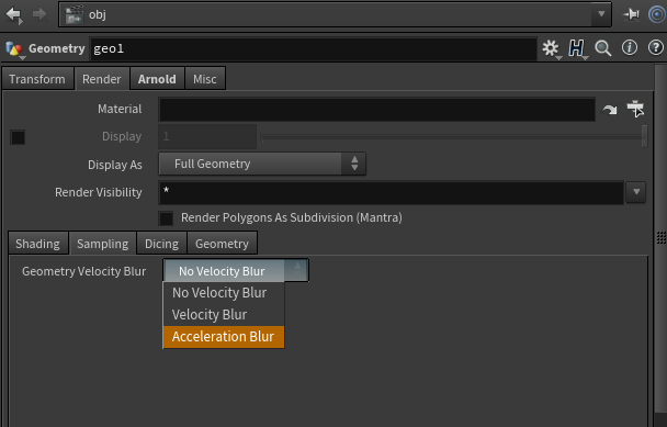 Geometry> Render> Sampling> 모션블러 셋팅 3가지 선택