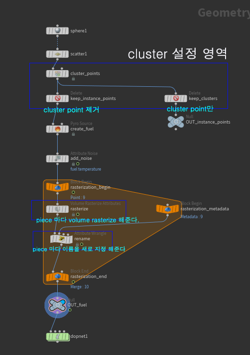 * foreach 에서 셋팅하는것 : 각 piece 마다 volume rasterize 를 해주고, naming 을 (이름_번호)로 바꿔주는 설정을 한다.
