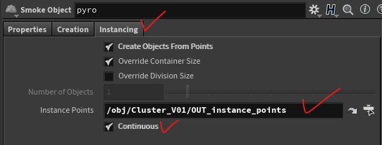 * Smoke Object > Instancing > Instance Points 에 instancing 될 points 경로를 넣어줘야 한다.