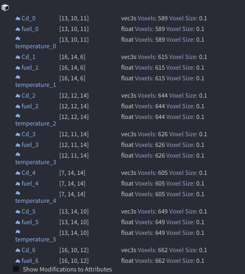 * foreach를 통해서 각각 fuel, temperature를 가지고 있는 pyro가 생성되는것이기 때문에, 시뮬레이션도 개별로 돌아가는 원리이다. (gas resize, turblence 등.. 다 제각각 계산되서 다른 shape 이 된다.)